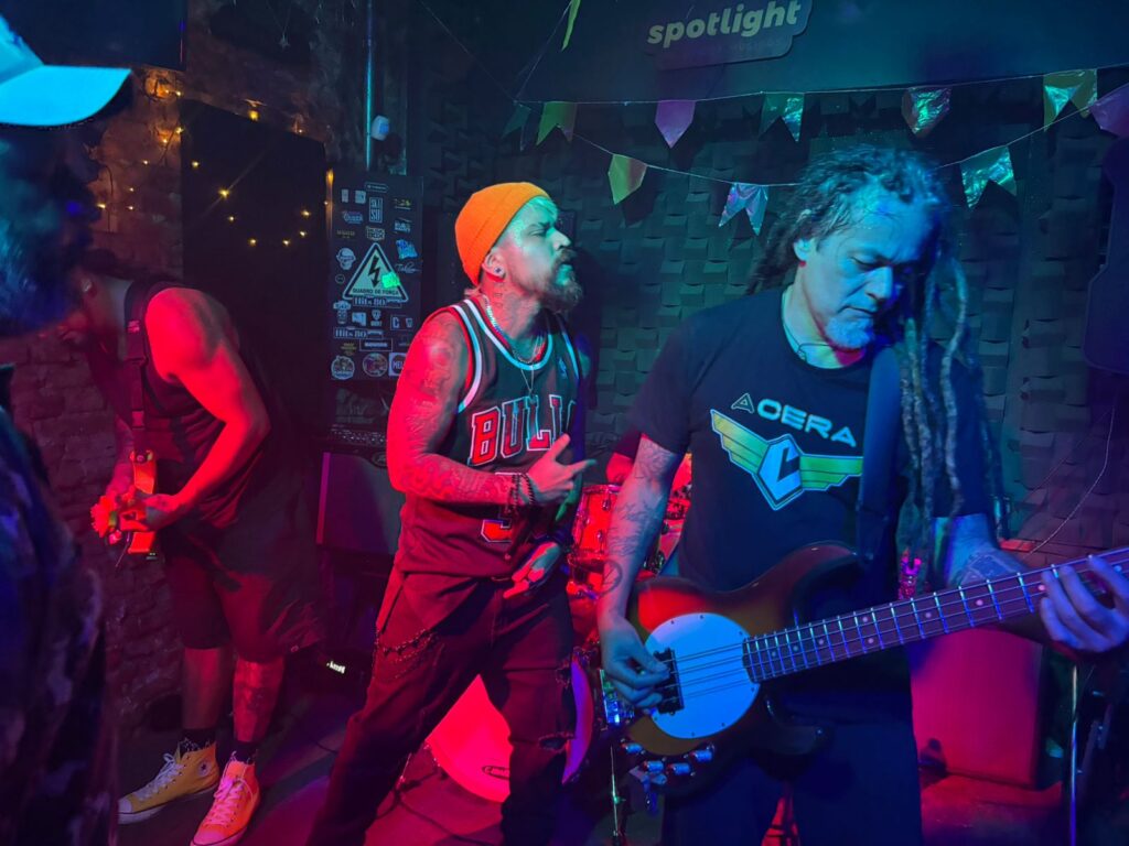 Com aquele bom e velho clima de banda se reestruturando e voltando à estrada, até mesmo um tanto quanto underground, era onze e meia da noite quando a banda entra ao palco do Mucha Breja com o peso de “Todo Mundo Doido”, primeira música da noite, cartão de visita certeiro, pois já a partir daqui, o público presente veio abaixo.